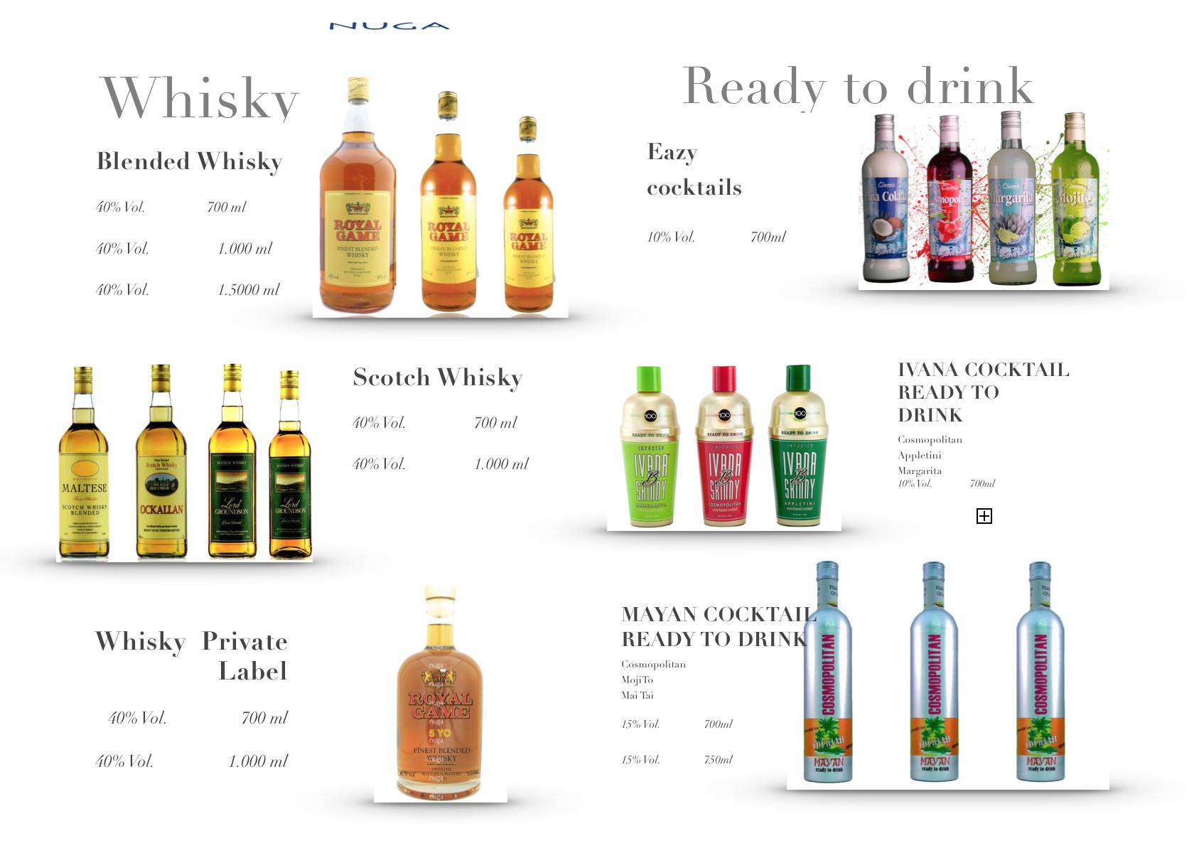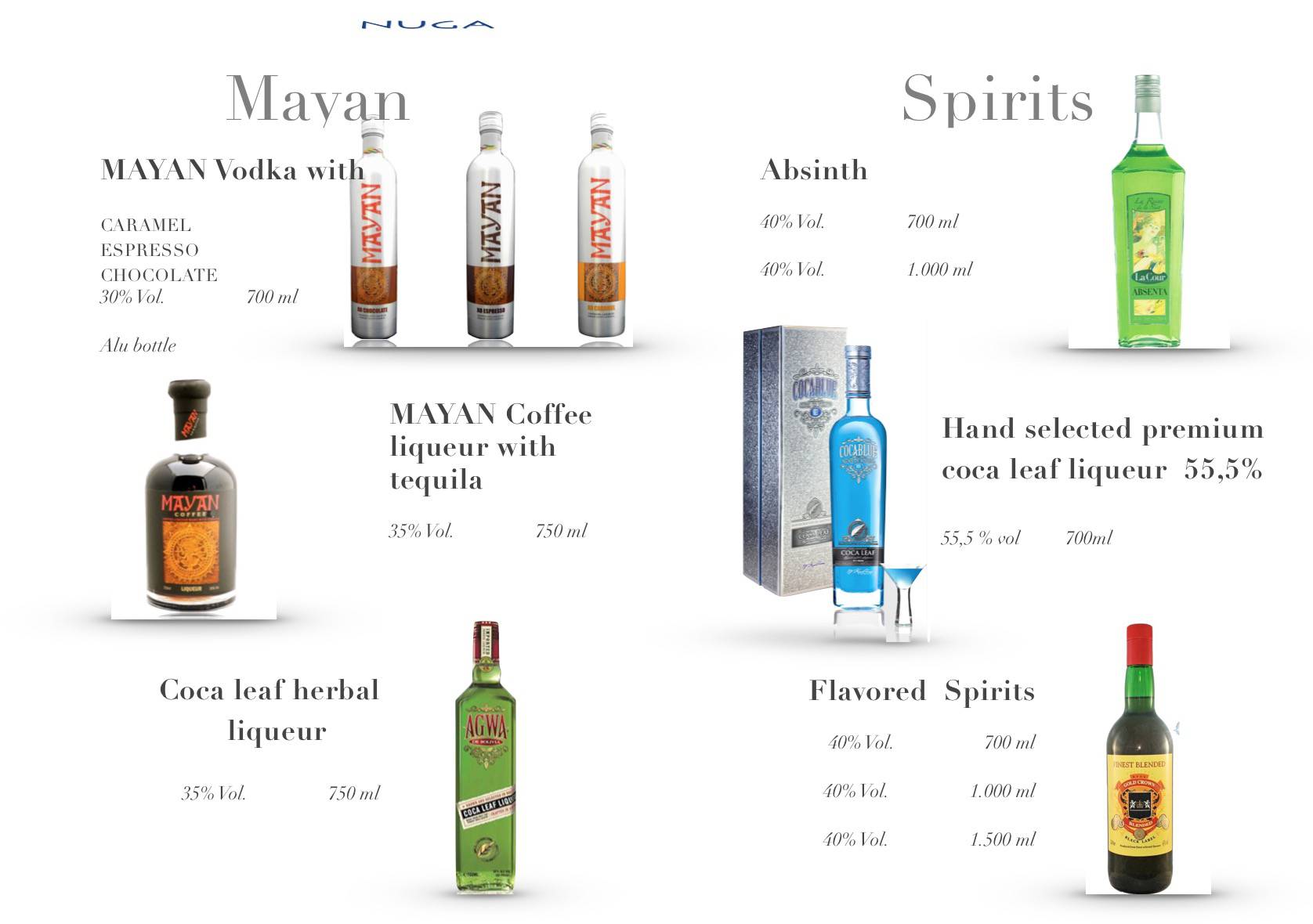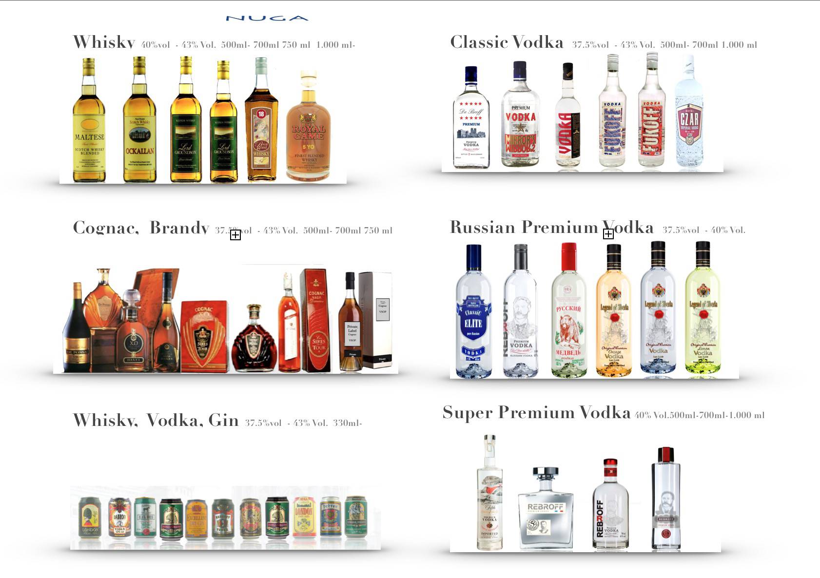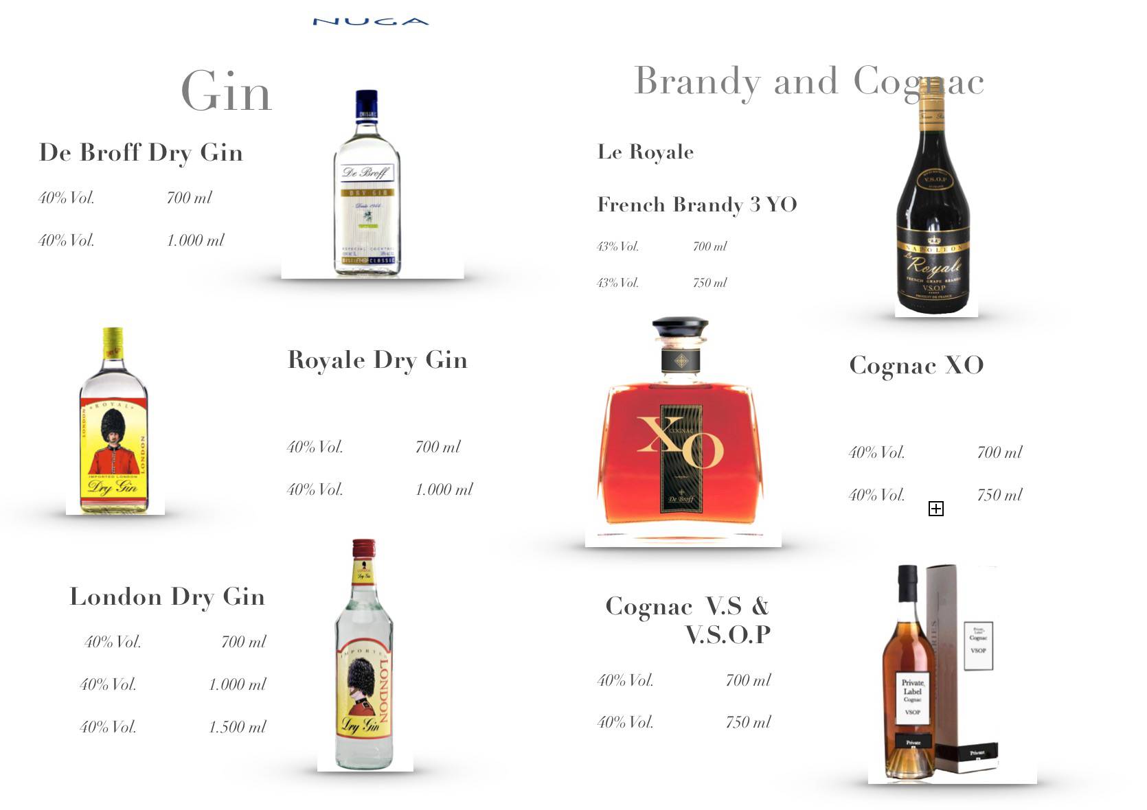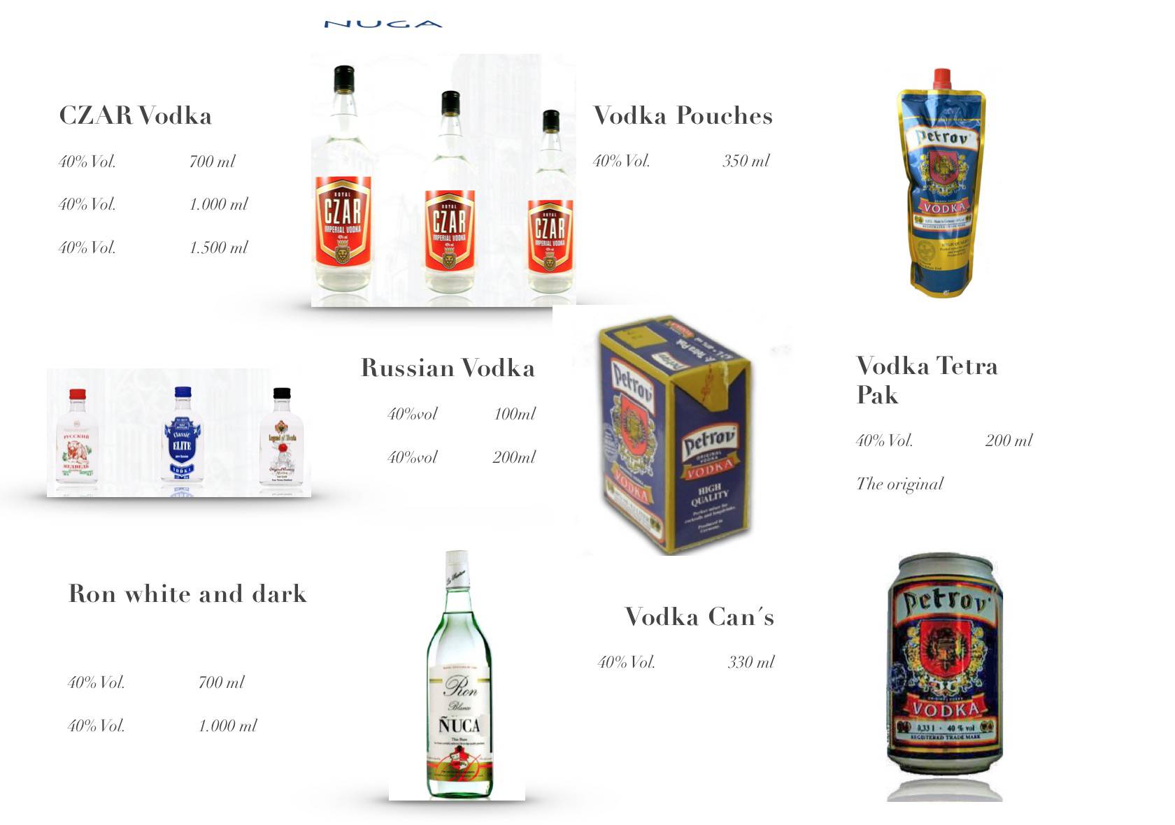 Vodka, X.O Cognac , Rum , Grappa, VSOP, Mayan Liqeur , Rebroff Wodka , Dry Gin , Whisky , Weinbrand , De Broff , Anbeten1899 , Wine , Spirits , French Brandy , Proff Bräu , Macdenau , Wein